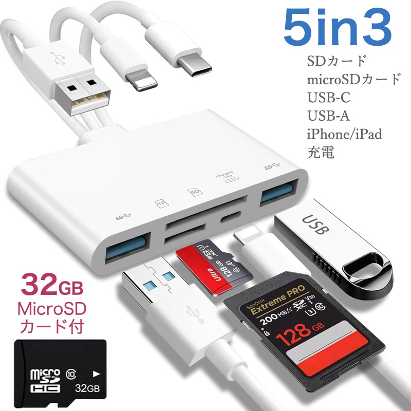 iPhone SDカードリーダー iPad 変換アダプタ iPhone 14/13/12 mini SE3 カメラ SDカード 動画転送 写真やビデオ データを双方向伝送 最新iOSに対応