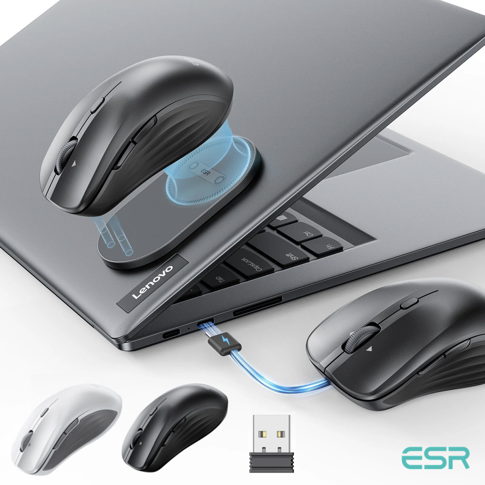 ESR MagMouse ワイヤレスマウス 電池不要 レシーバー付属 ノートパソコン用充電式ワイヤレスマウス 内蔵充電ケーブル 粘着ホルダー BT5.0 2.4GHz