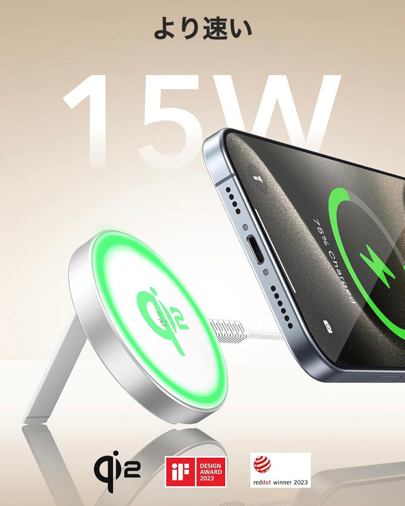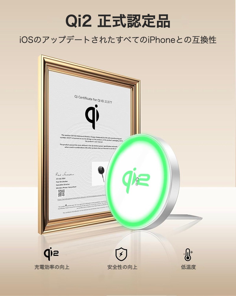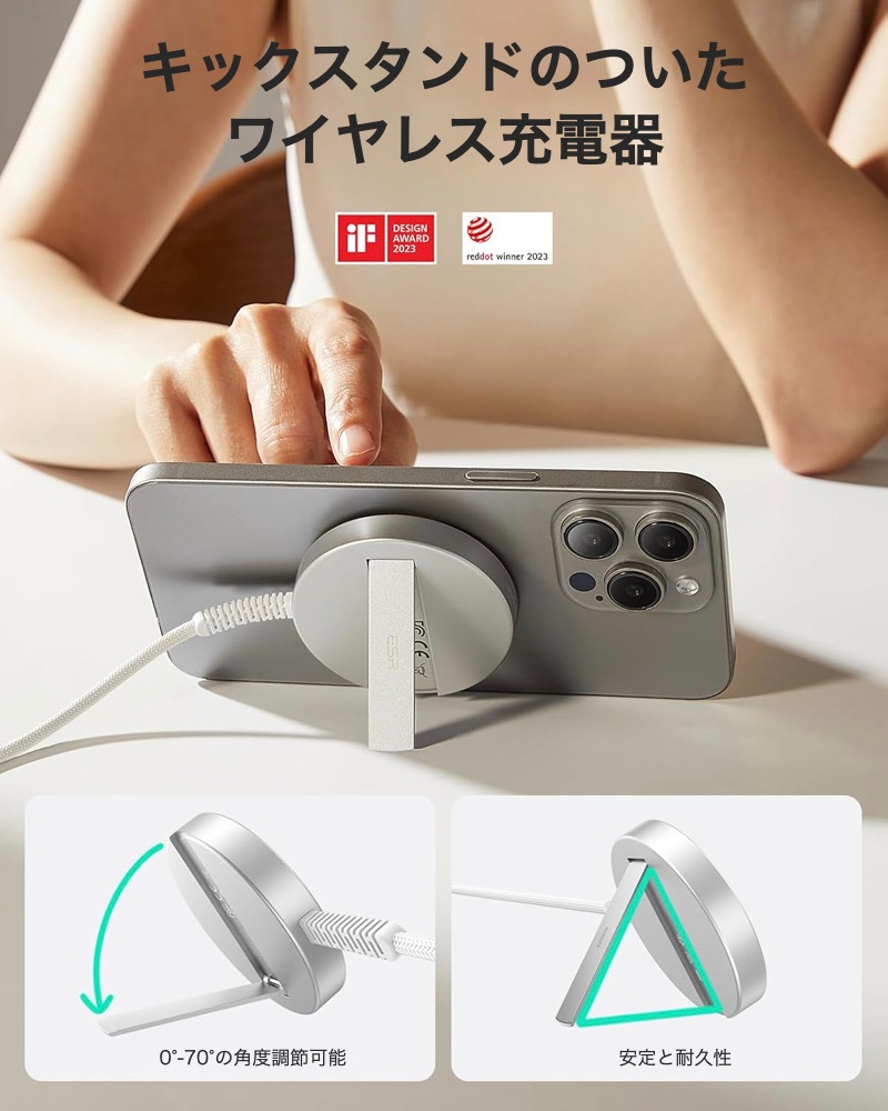 | ESR Qi2 キックスタンドワイヤレス充電器 |
