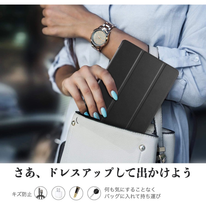 ・手触りの良いPUレザー素材を使用したタブレットケースです。 ・三つ折り型でスタンド横置きできます。 |
