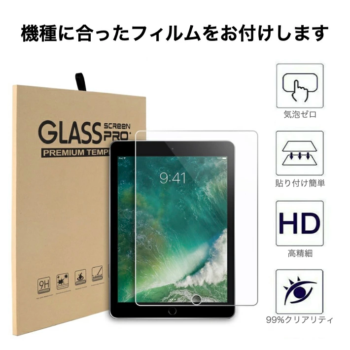 | 保護フィルム | ※本ケースの内側(iPadの液晶画面)に貼り付けてください。その後本ケースを取り付けてください。 ・セットの強化ガラスフィルムはiPadに合わせた専用フィルムをお付けします。 【2.5Dラウンドエッジ加工】 iPadスクリーンとの一体感がより向上 【タッチがしやすい】 滑らかな指ざわりで細やかな操作も問題無し! 【貼りやすい】 画面の埃を拭いて、位置を合わせて、載せるだけ。 勝手に自然吸着して、気泡も入らないから初めてでも簡単に貼ることができます。 【硬強度9H】 強くて、割れにくい。 【飛散防止】 割れてしまっても大切な手を傷つけない |