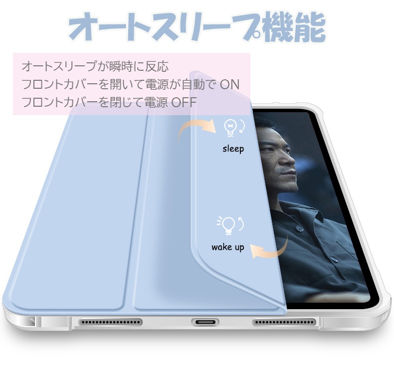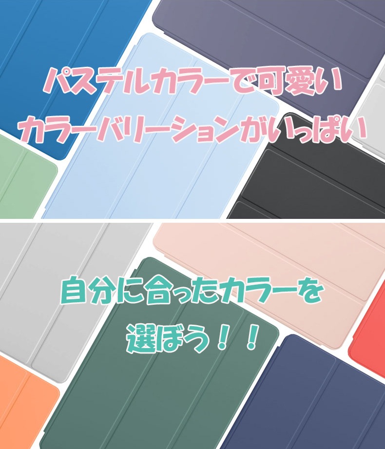【Apple Pencilユーザーのためのケース】 サイズぴったりのペンホルダーはもちろん、 キャップ・アダプタ用のホルダーやペン立ても付いた、Apple Pencilの使用に最適なケースです。 ※Apple Pencilは付属しません。 【三つ折りフロントカバー】 風呂ふた仕様の三つ折りのフロントカバーは、高品質なPUレザー素材で仕上げられており、この価格では想像できないおしゃれで高級感のあるケースになっています。 三つ折りフロントカバーには、複数のマグネットが均等に内蔵されています。 【安定したスタンド機能】 フロントカバーに内蔵された複数のマグネットにより、安定したスタンド機能をご利用いただけます。 タイピングや動画視聴などiPadを立ててご使用の際に、とても便利にご利用いただけます。 【オートスリープ機能】 オートスリープ機能で、バッテリーが無駄に消費してしまうのを防ぎます。 |