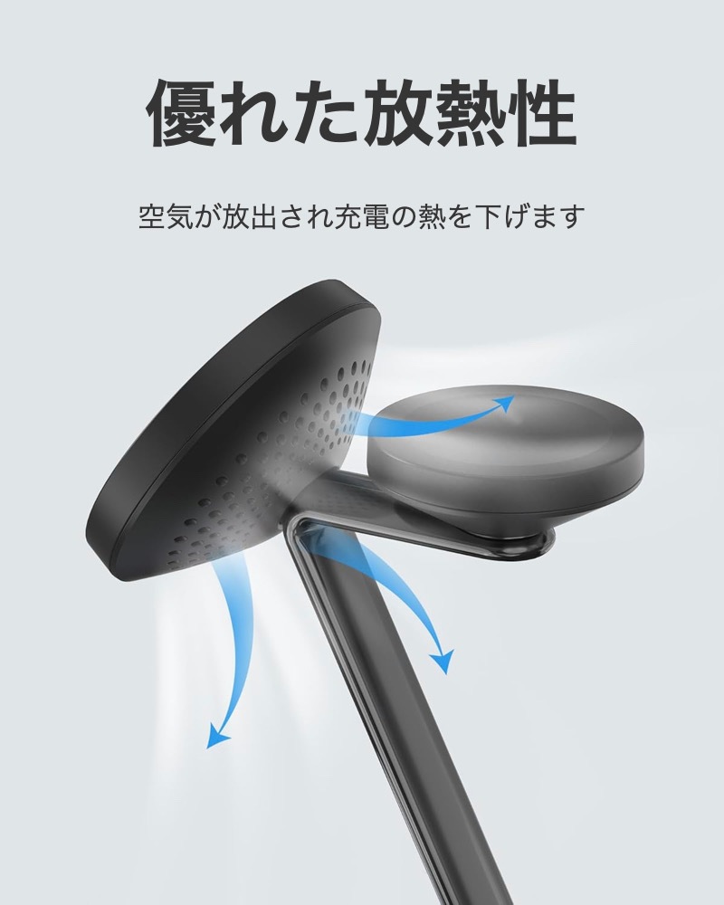 【3in1ワイヤレス充電器】 ごちゃごちゃした充電ケーブルに悩まされませんか。SODIワイヤレス充電器は同時にiPhone(15W)、AirPods(5W)、iWatch(2.5W)を充電できます。もつれたケーブルに別れを告げ、楽々と充電します。スペースを節約しましょう。そして、外観が美しくおしゃれ。リビング、ベッドルーム、オフィスなど様々なシーンに置いても、違和感がありません。 【15W急速充電】 先進のチップセットを搭載し、約20%の電流変換率の向上を実現しました。デバイスをMag-Safe充電器に置くだけで迅速に充電できます。最大15Wの高出力充電が可能です。縦置き・横置きが可能で、スタンバイモードにも対応しています。 ご注意: 通常の携帯電話ケースは磁気吸引力に影響を及ぼし、充電が遅くなったり中断したりする可能性があります。充電中は携帯ケースを外すか、mag-safe ケースを着用してください。 【心温まる夜間ライト】 スタンドの底部にライトを制御するボタンがあり、眠りにつく前にベッドサイドに置くのに非常に適しています。暖かい黄色のライトは居心地のよいナチュラルな雰囲気を感じます。ご注意:インジケーターライトが点滅するまで待ってから押してください。対応機種: iPhone15/14/13/12Pro/Pro Max全シリーズ、AirPods(第2世代)、AirPods(第3世代)、AirPods Pro、Apple Watch 9/8/7/6/5/4/3/2/SE/Ultra/Ultra 2に対応します。 【多重保護機能】 この充電スタンドはPSE認証を取得し、厳格な安全基準をクリアしています。異物識別、電流保護、過熱保護等優れた機能を搭載して、急速充電の同時に、全方位保護を実現します。例えばスマートにリアルタイムで温度を制御して、スマホのバッテリーを熱や損傷から保護します。同時に背面は中空デザインを採用し、空気の流れを促進し、放熱効果が抜群。 【内容品】 SODIでは2年間の長期保証と安心のカスタマーサポートに対応。ご購入にあたりご不明点等がございましたら、お気軽にお問い合わせください。パケージ内容:ワイヤレス充電器x1、Type-C to C充電ケーブル(1M) |