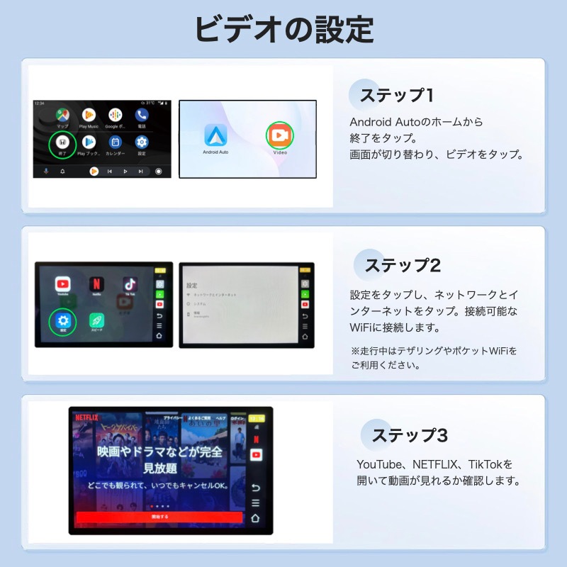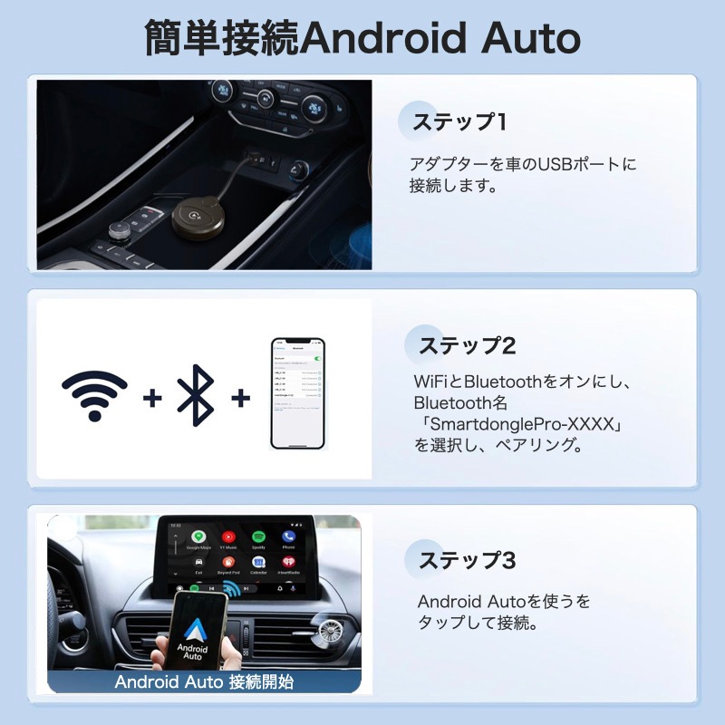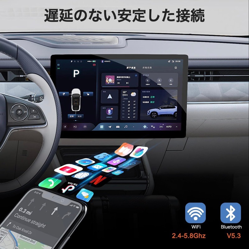 【プラグ&プレイ】 接続作業が簡単で、他のドライブやアプリなどは不要です。1、アダプタでナビやディスプレイオーディオに接続します。2、スマホ側のBTとWi-Fiをオンにして、1度設定すれば2回目以降からエンジンを切っても次回からそのまま使えるようになります。 【動画視聴・純正操作続行】 YouTubeなどの動画が見られる!Android Autoが付いているナビに接続したら、Youtube、Netflix、TikTokが見られます。ノブコントロール、ステアリングコントロール、音声コマンド、ハンドルコントロール、タッチスクリーンなど純正の機能も使えます。 【スマートで安全な運転アシスタント】 このAndroid Autoアダプターは、iPhoneのAPPを車のディスプレイに同期でき、画面タッチ、ボタン、ノブなどの元の車の制御方法とも完全に互換性があります。音声コントロール、Google、オンライン音楽、GPS ナビゲーション アプリ、音楽アプリ、通話、メッセージの使用を含む、すべてのオリジナルの Android Auto機能をワイヤレスで楽しむことができます。 【対応機種】 このワイヤレスアダプターは、Android Auto機能を備えた車、モデル年式:2016以降の車種に対応しています。 USB - Type-C OTG アダプターが含まれているため、より多くのオプションが提供されます。 フォルクスワーゲン / メルセデス / ポルシェ / リンカーン / トヨタ / フォード / ホンダ / ジープ / キア / ラムなど 600 以上の車種に完全に対応し、このアダプターはAndroid 11以降でのみ使用できます。 (HUAWEIスマホには未対応) 【自動的に接続&安定性】 2.4G MHz BTおよび 5.8G MHz WiFi チップを内蔵したワイヤレス カープレイ アダプター、高速な処理速度、より安定した接続。 最初の接続後は、スマホがポケットやバッグに入っている場合でも、車両を始動するとすぐにデバイスが自動的に スマホに接続されます。 BTと WiFi のすべての利点を活用して、高速で安定したカープレイ体験をお楽しみください。 【インテリジェントで安全な運転アシスタント】 このワイヤレス カープレイ アダプターは、スマホのアプリを車のディスプレイに同期させることができ、タッチ スクリーン、ボタン、ボタンなどの元の車の制御方法とも完全に互換性があります。 音声コントロール、Googleアシスタント、オンライン ミュージック、GPS ナビゲーション アプリ、ミュージック アプリ、通話、メッセージなど、カープレイ本来のすべての機能をワイヤレスで楽しむことができます。 |