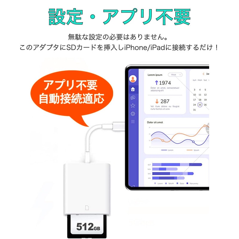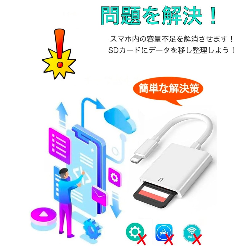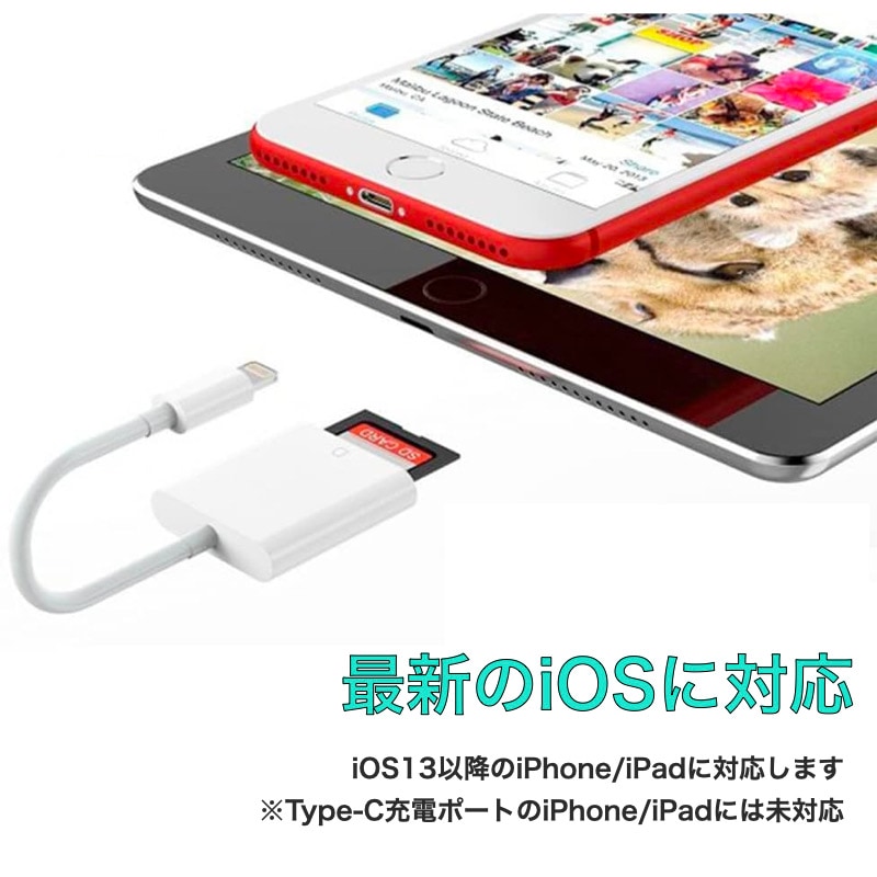 iPhone SDカードリーダー iPad 変換アダプタ iPhone 14/13/12 mini SE3 カメラ SDカード 動画転送 写真やビデオ データを双方向伝送 最新iOSに対応