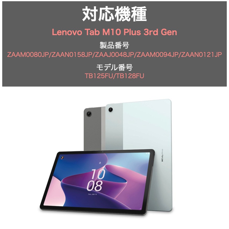 | 機種 | 【対応機種】 ・Lenovo Tab M10 Plus 3rd gen (製品番号:ZAAM0080JP/ZAAN0158JP/ZAAJ0048JP/ZAAM0094JP/ZAAN0121JP) (モデル番号:TB125FU/TB128FU) 【未対応機種】 ●Lenovo Tab M10 HD (2nd Gen) ●Lenovo Tab B10 (TB-X505F) ●ソフトバンク TAB5/TAB6 ●Lenovo Tab M10 FHD REL ●Lenovo yoga Smart Tab5 ●Lenovo Smart Tab M10 Plus 第2世代 ●Lenovo Tab M10 FHD Plus 10.3" 第2世代 2020発売 には未対応 |