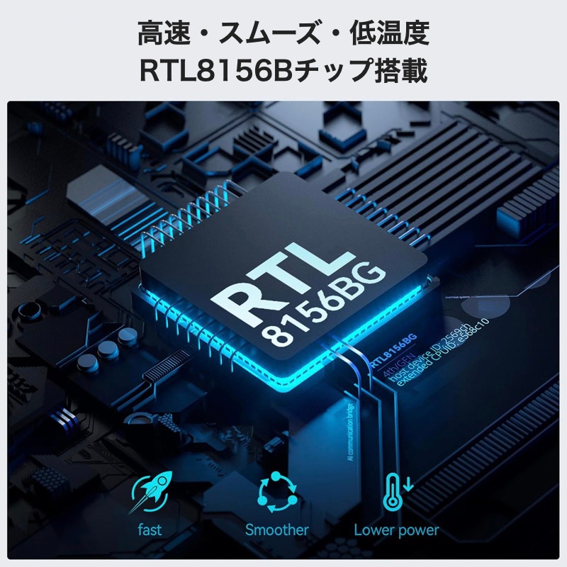 【2.5Gbps対応の高速通信】 本製品はUSB Type-Cポートを搭載したPCと高速接続するLANアダプターで、2.5Gbps(理論値)のLANポートと5Gbps(理論値)のUSB 3.2(Gen1)に対応しています。これにより、最大2366Mbpsのダウンロード速度を実現し、最大2.5Gbps(規格値)の安定した高速通信が可能。大きなファイルの転送やテレビ会議、動画視聴、オンラインゲームが快適になります。(ご注意:※2.5Gbpsでの通信をご利用いただくには、ネットワーク経路上の機器が2.5GbEに対応している必要があります。) 【有線ならではのping値改善】 オンラインゲームをプレイする際、本製品を使用することで、データの送受信の速さであるping値を大幅に改善することが可能です。無線WIFIネットワークと比較して圧倒的な数値の改善はもちろん、1ギガビット環境でも、ICコントローラーの最適化により改善を見込めます。(ネットワーク信号が劣化する可能性があるため、強い干渉がある環境では使用しないことをお勧めします。) 【放熱性に優れた最新チップRealtekを搭載】Realtekスマートチップが搭載されており、いままでのチップに比べ発熱を抑えることができるので、使いはじめてからの温度の変化が少なく長時間でも安心してご利用いただけます。また、アルミ合金製シェルを採用しており、酸化や錆を防ぎます。 【Windows/Mac両対応】 Windows11/Mac OSのPCなら、USBポートに差し込むだけで自動的に認識され、すぐに高速通信を行うことができます。(ご注意:Windows10以前やその他のOSでご使用いただく際はRealtek社サイトより各OS用のRTL8156Bドライバーをダウンロードしインストールのうえご使用ください。) 【軽量&コンパクト】 手のひらに収まる軽量&コンパクト設計で、デスクトップ用としても、ノートパソコンのアクセサリとしても便利に使えます。また、柔らかなケーブルを採用し、取り回しの良さも考慮しています。ホストUSBポートから直接電源を取るため、電源アダプタの携帯は不要です。(ネットワークが弱くなったり、ネットワークに接続できなくなったりする可能性がありますので、LANケーブルを使用する場合、長すぎるケーブルは使用しないでください。) 【ご注意】 本製品がPCに接続して、使用不可や接続不良の場合は、下記項目を試してください。:Windowsの場合:「デバイスマネージャ」→「ネットワーク」で「Realtek Gaming USB 2.5GbE Family Controller」が認識できるかを確認。・認識していたら、[ネットワークの問題の診断] を実行または本製品のドライバをダウンロード・インストール。MacOSの場合:システムレポートの「USB」で「USB 10/100/1G/2.5G LAN」が認識できるかを確認。・認識していたら、ネットワーク環境設定で、「USB10/100/1G/2.5G LAN」が接続されているか確認。表示されていない場合、LANポートやLANアダプタ、LANケーブルの接続をチェック。それでも問題が解決しない場合は、LANケーブルやルーターのポート、PCを交換することをお勧めします。 |